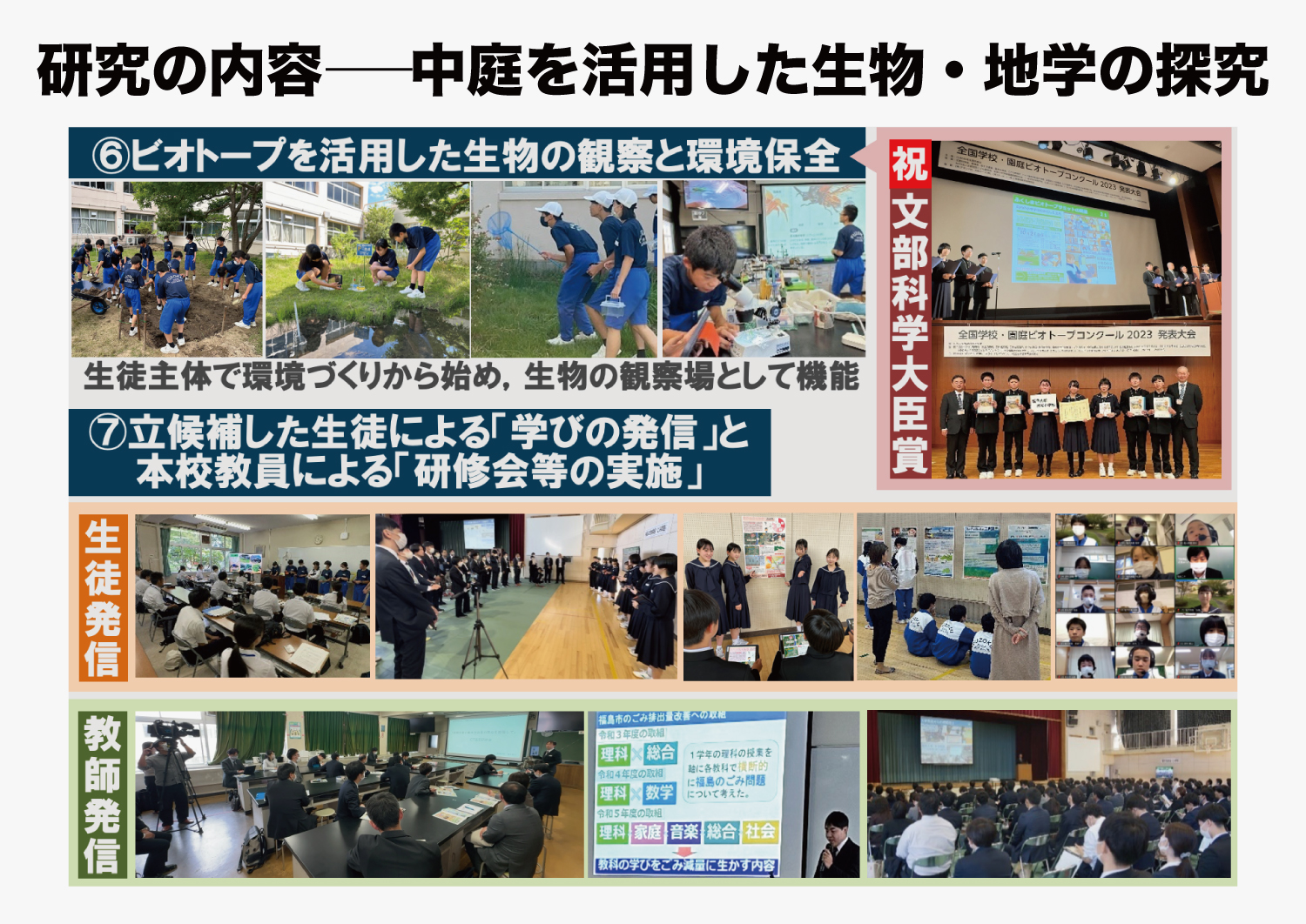 研究の内容―中庭を活用した生物・地学の探究。(画像提供:福島大学附属中学校)