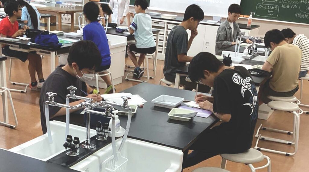 本校では、広く本物に触れることを重視した教育を展開しており、特に中学理科教育においては、座学とは別に少人数での実験実習の時間を確保し、毎週様々なテーマで自然科学に関する学びを深めている。