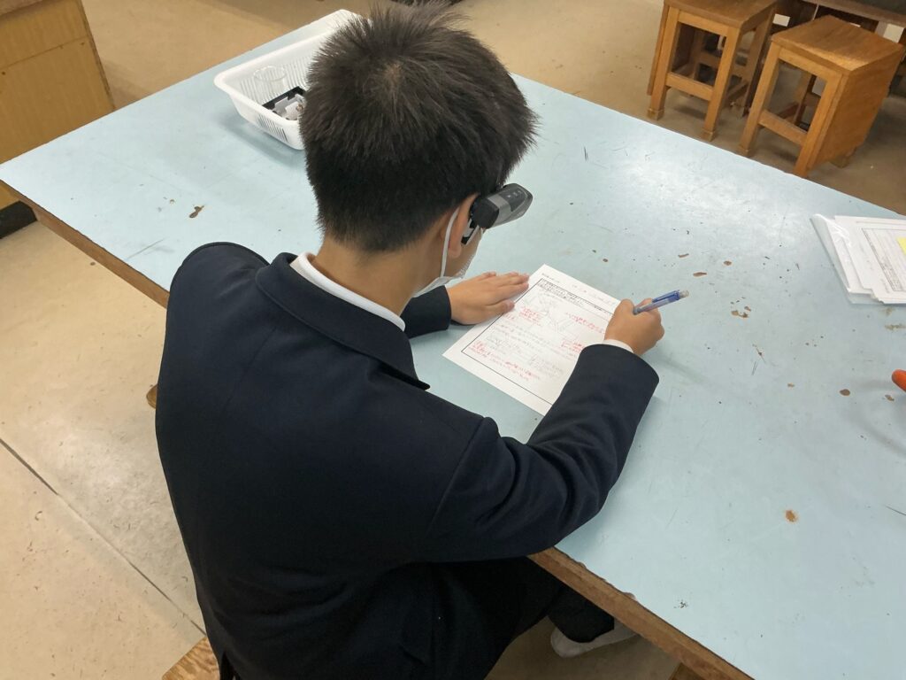 今回の実践では、この科学レポートを書くことを苦手とする生徒に焦点を当て、その書く際の視線や思考の特徴について分析した。生徒がどの情報(教科書や資料集・インターネットなど)に注目しているのかを明らかにするためにウェアラブルカメラを用い、さらに発話思考法を併用して、生徒が考えながら書く様子を記録した。