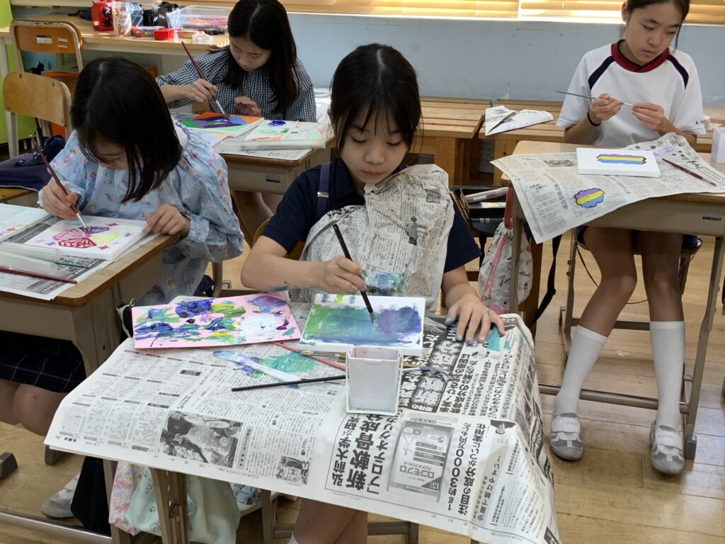 また、表現力と探究の統合を目指し、自分らしさを抽象的に描くアート作品(40cmキャンバス)を制作した経験を基盤として、今後はゴミ問題への気づきをアートで社会に発信する活動へと展開していく予定である。これらの学びを通して、子どもたちが自ら課題に向き合い、社会を変える一歩を踏み出す力の育成を目指していく。